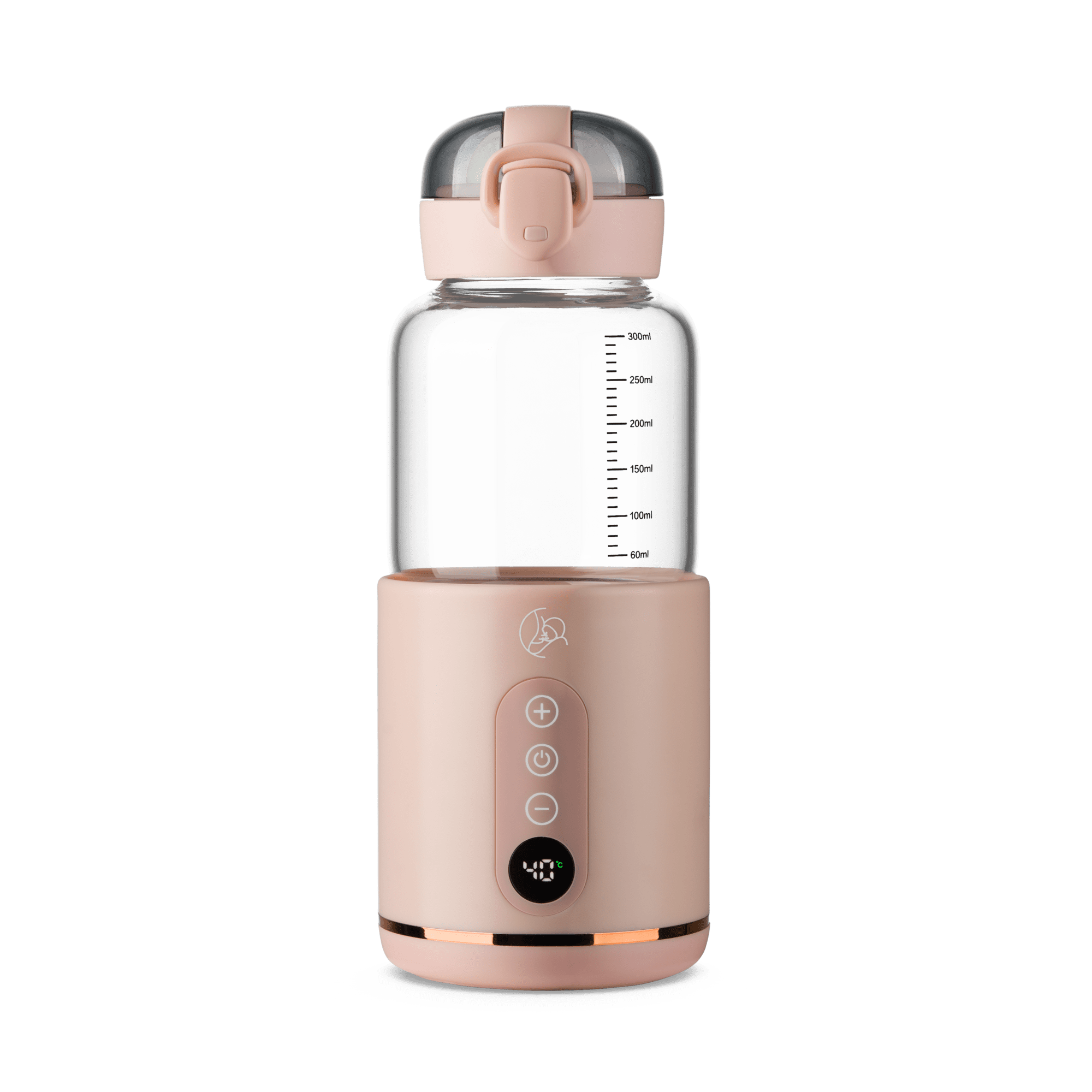 Butelka sterowana jest 3 przyciskami: 1. Plus - pozwala zwiększyć temperaturę wody 2. Przycisk zasilania - uruchamia podgrzewanie oraz pozwala sprawdzić stan naładowania baterii 3. Minus - pozwala zmniejszyć temperaturę wody