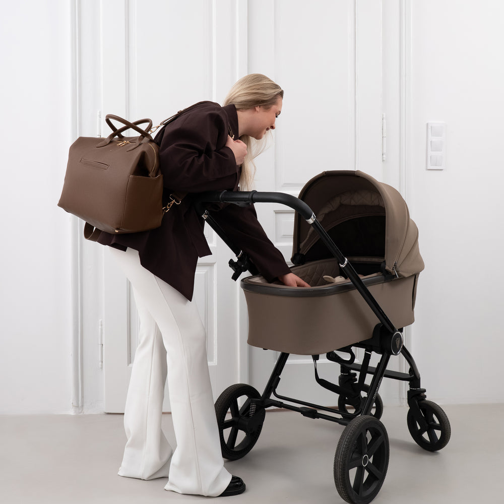 Stylowa i maksymalnie funkcjonalna torba dla mamy MyBabyBag z 6 przegródkami, która zmieści wszystko, czego potrzebujesz na spacerze lub w podróży z dzieckiem.