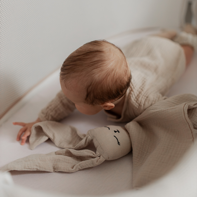 Miękki króliczek z delikatnego muślinu - ukochany towarzysz snu i codziennych chwil. Otula, uspokaja i daje maluszkowi poczucie bezpieczeństwa.