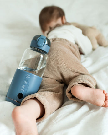 Przenośny podgrzewacz do butelek, wody i mleka dla dzieci - niebieski